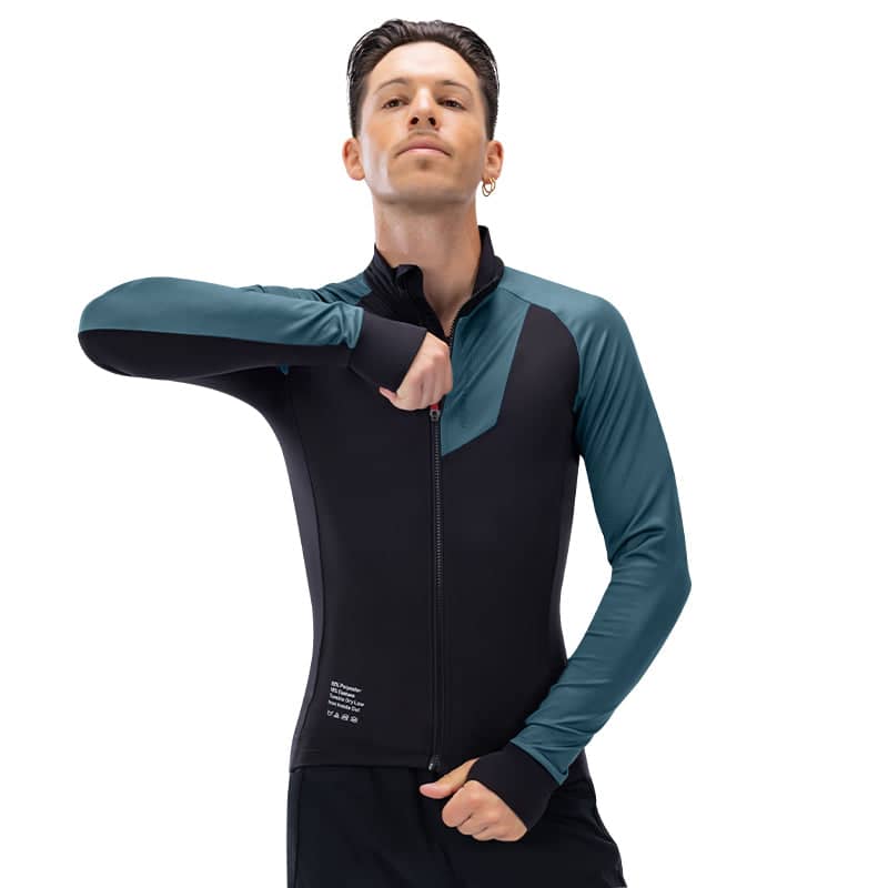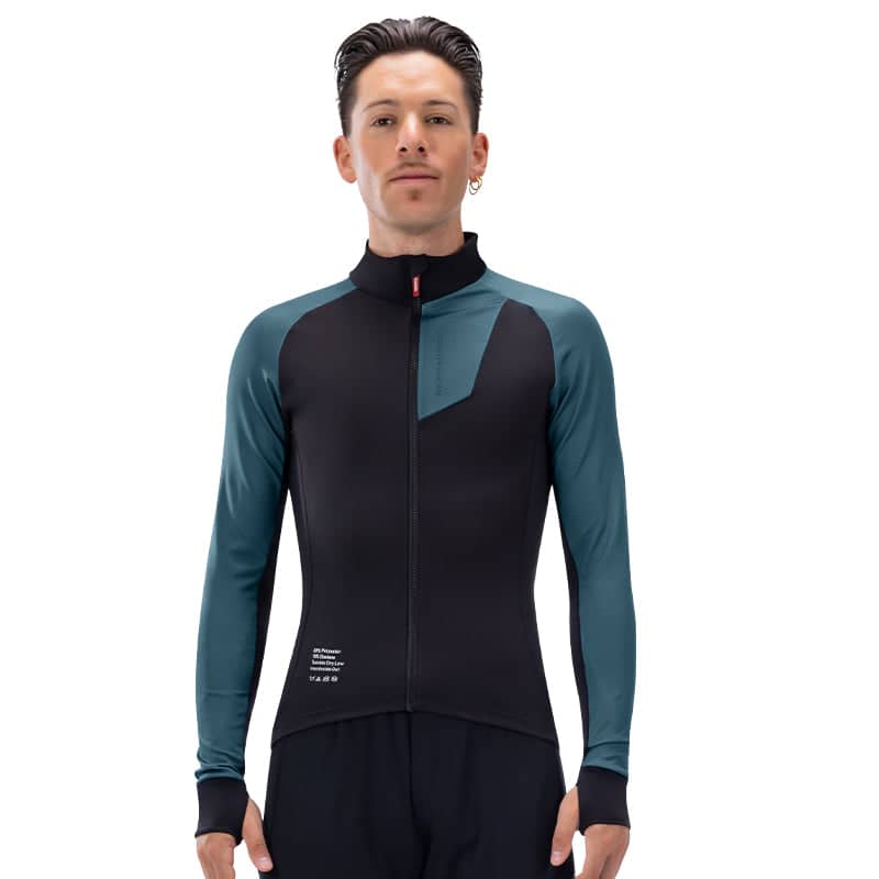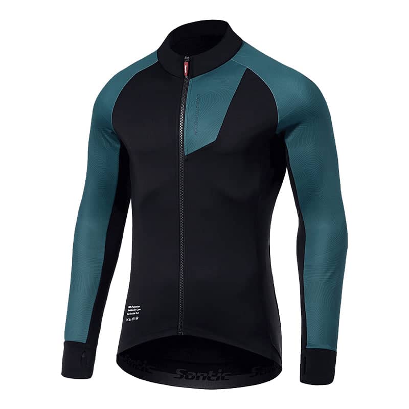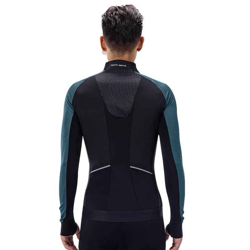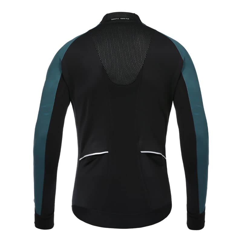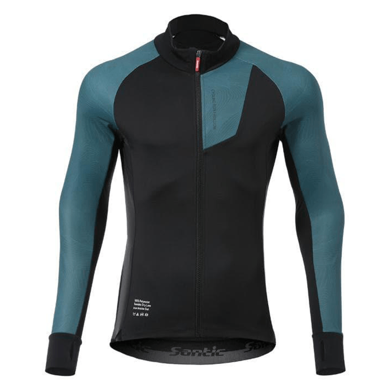 • Santic Blue Sea Men's Winter Jersey in a sleek black and blue combo, a blend of fashion-forward style with unparalleled functionality. This jersey boasts a deconstructed design and precision three-dimensional cutting for an avant-garde appeal.