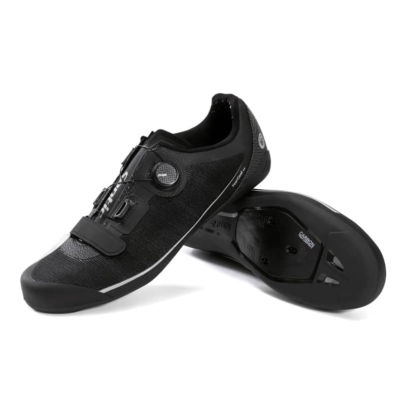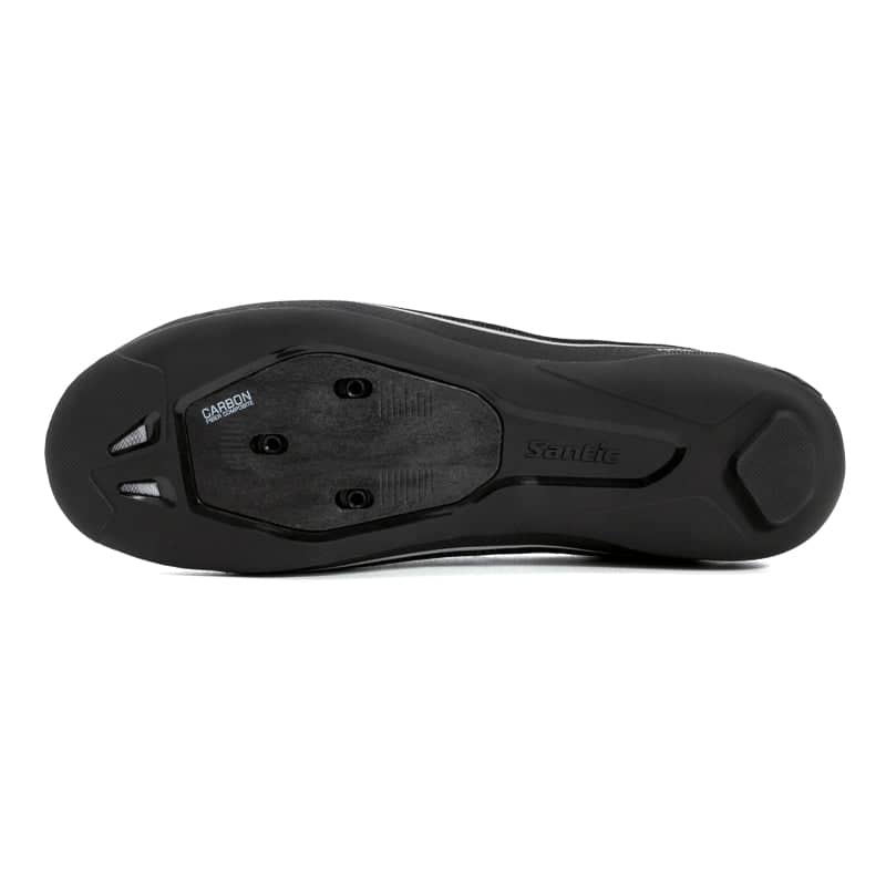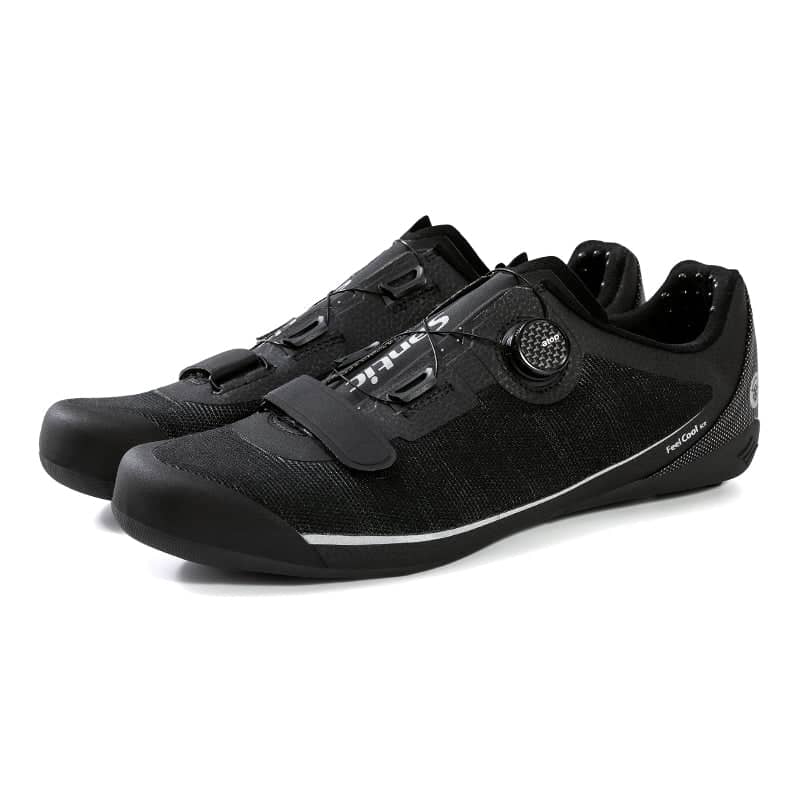 Introducing the Santic Fuji Men's Carbon Road Bike Shoes: Where Performance Meets Comfort and Support! At the heart of these shoes lies a sole reinforced with carbon, striking a harmonious balance between stiffness and efficiency. The low stack height further amplifies power transfer, ensuring each pedal stroke propels you forward with precision and stability.