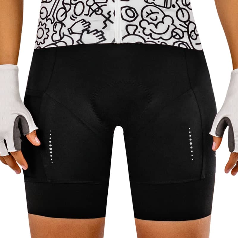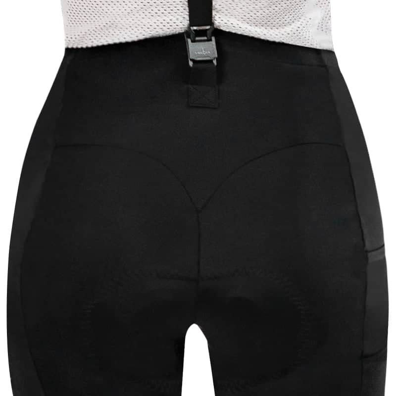 Santic Oli Women's Bib Shorts uses a combination of advanced materials and technology to create a performance garment that's comfortable and supportive. At the core of this short is the breathable seat pad designed for the female anatomy, which better distributes pressure and damp vibrations. It's ergonomically shaped to move with the body through the pedal stroke and stay in place when shifting in and out of the saddle.?