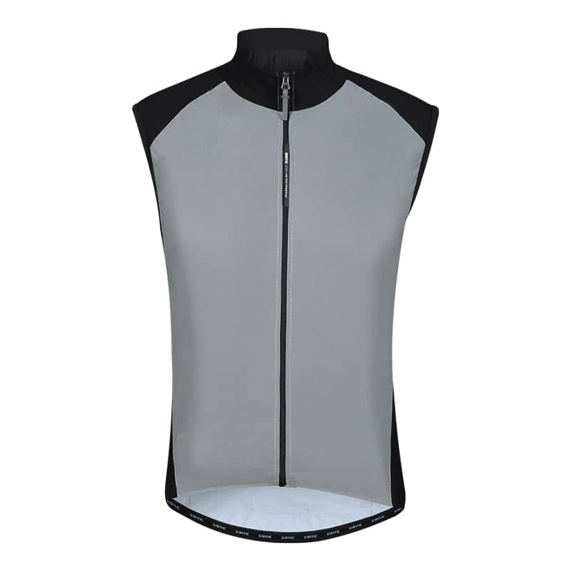 ¡ñ Heat-fixing method of the hem to reduce skin irritation.¡ñ Full front zip and raised collar design.¡ñ Elastic webbing on the cuffs for a comfortable fit¡ñ Elastic hem featuring a silicone gripper¡ñ Back organ opening for breathability.¡ñ Reflective prints improve road safety in low light conditions.¡ñ 88% Nylon + 12% Spandex¡ñ This gilet is "Sports Fit"